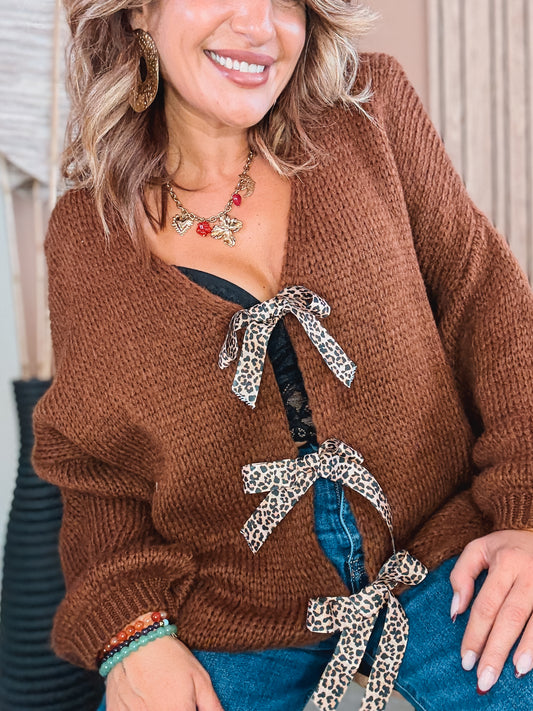 ÉpuiséGilet Noeuds Léopard Brun